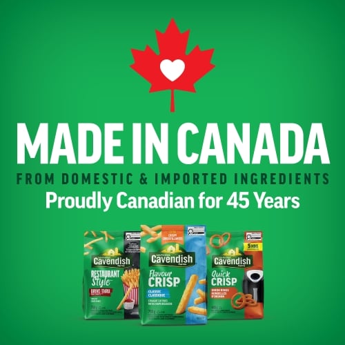 These skin-on fries are a true favourite. Cavendish Farms Restaurant Style Drive Thru Fries offer the flavours of dining out with the comfort of staying in. Coated for extra crisp, they take only 10 minutes to cook and give you the drive thru taste you crave, no drive thru lineups required. A delicious snack you can make at home in no time! Made in Canada from domestic and imported ingredients.